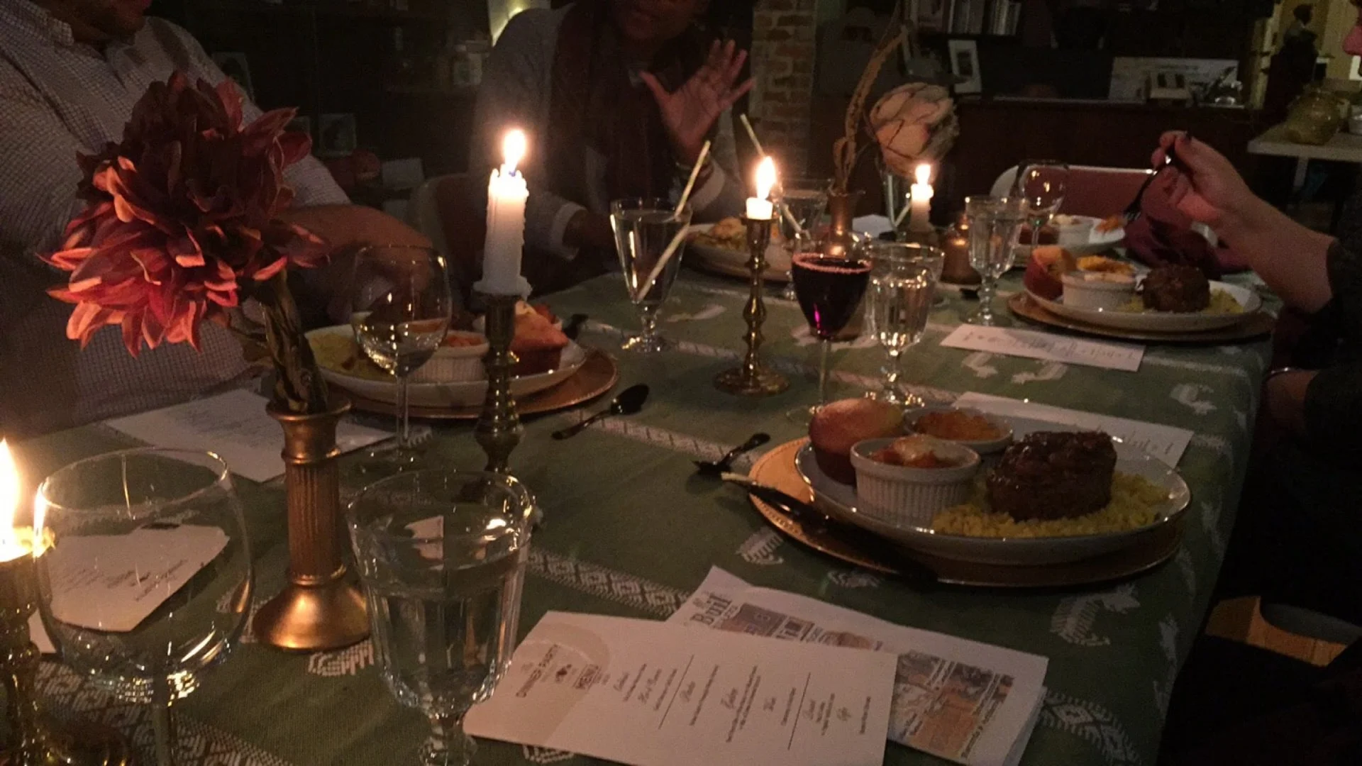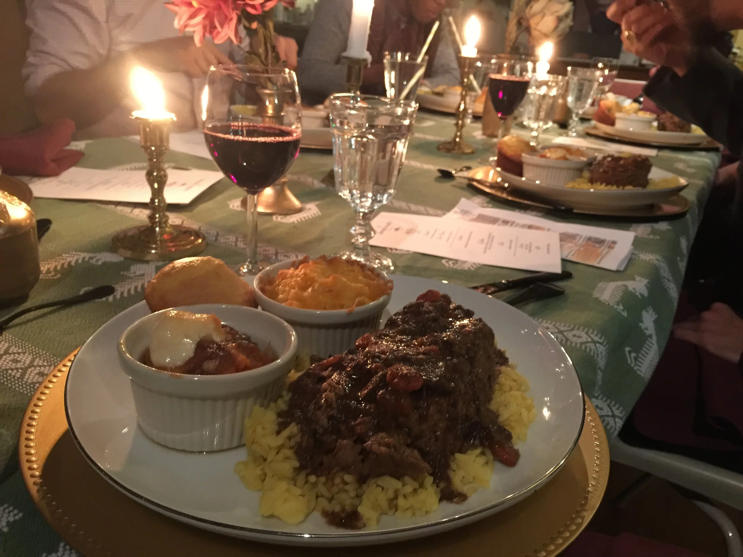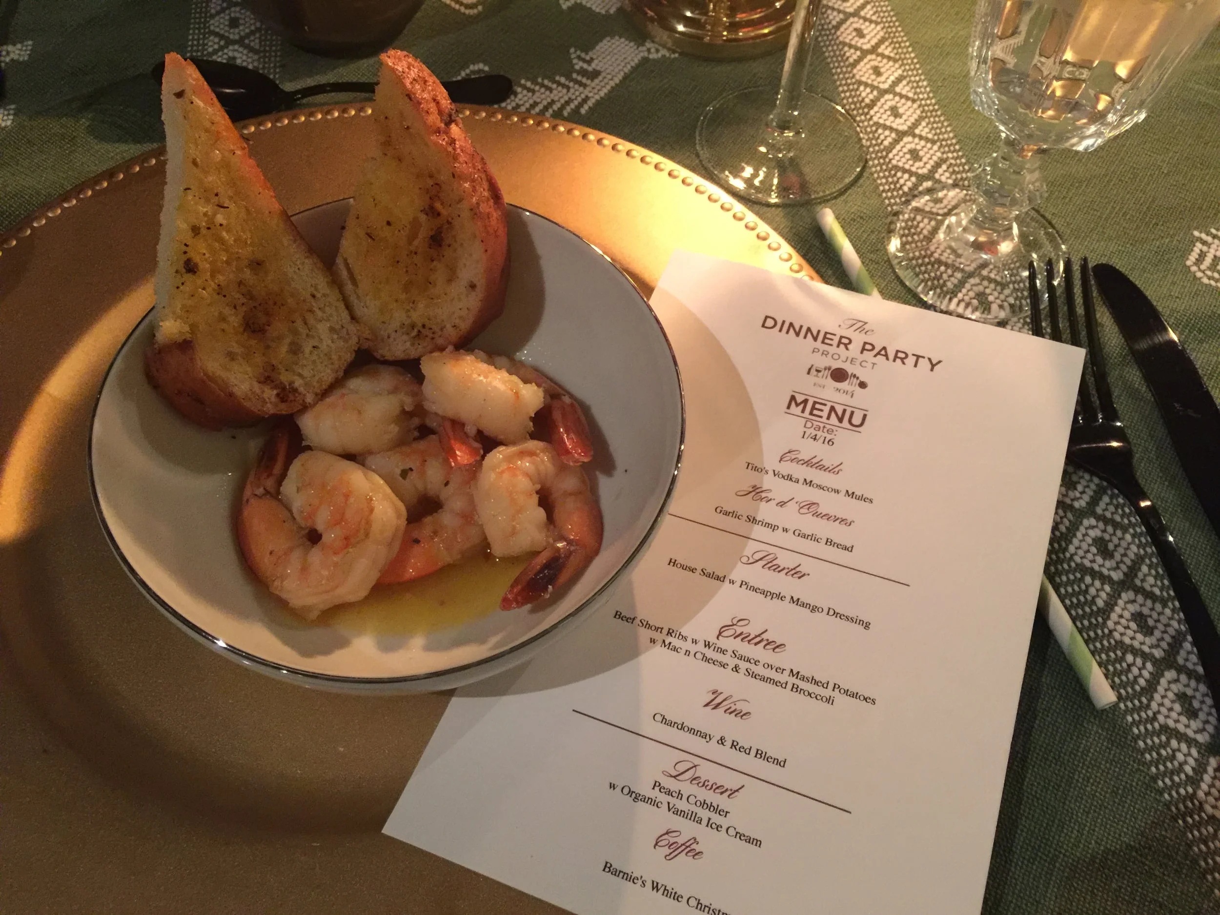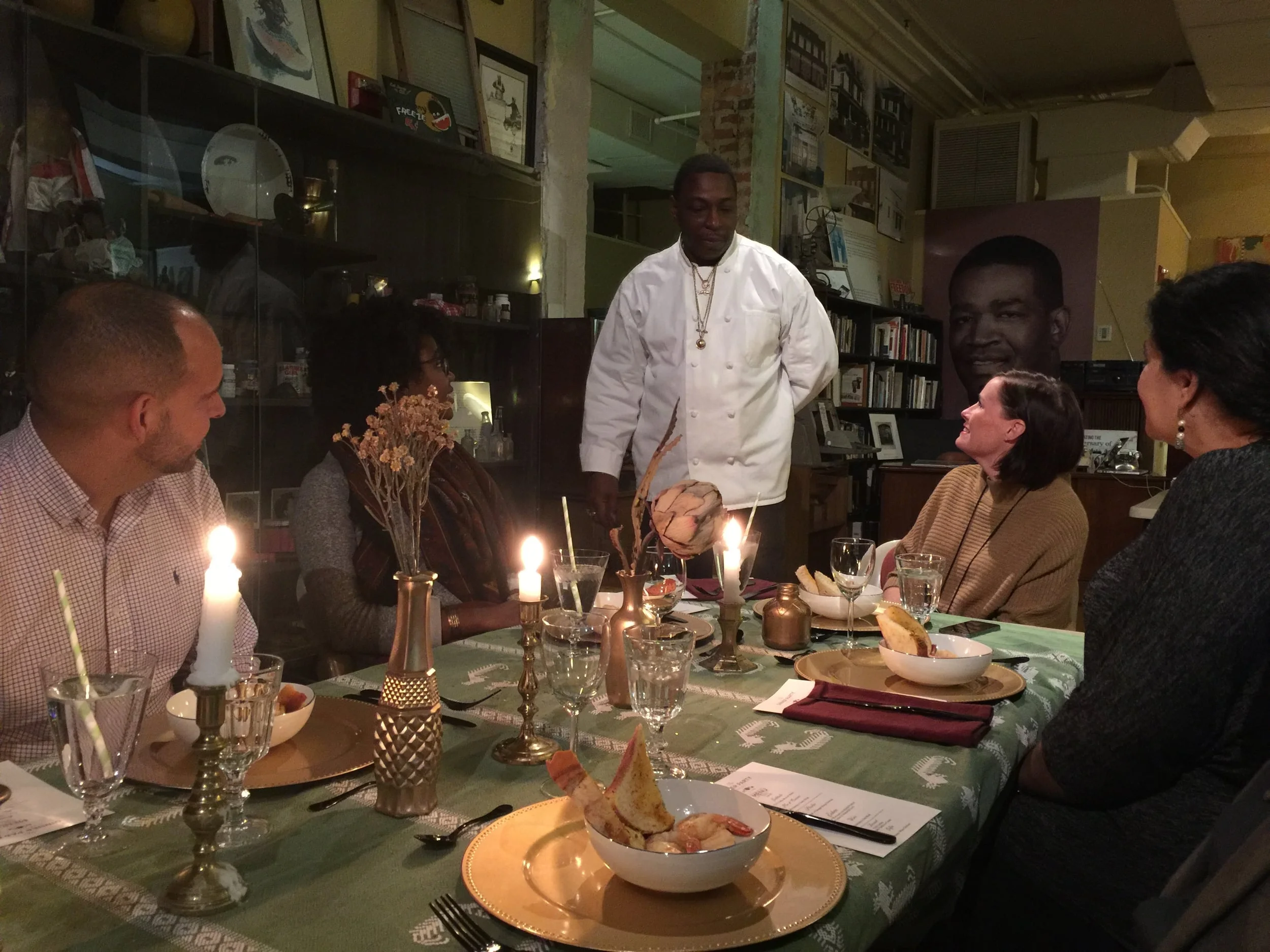 As 8 Strangers gathered around the table, the crew from Chef Eddie's, was gearing up to serve us 4 incredible courses. We started out w some Garlic Shrimp w Garlic Bread, that we could have eaten all night. Followed by a House Salad and then the Entree blew us away w so much food! Juicy Meatloaf, Rice Pilaf, Sweet Potatoes, Mac n Cheese, & Cornbread. We rounded out the evening w some Sweet Potato Pie & Organic Vanilla Ice Cream. This Soul Food really hit the spot. That evening we learned that Chef Eddie has served the likes of President Clinton & Jesse Jackson. We were very grateful they were up for serving us too!